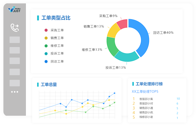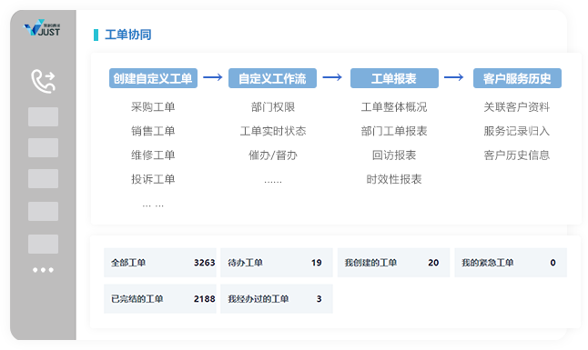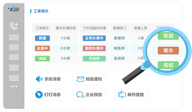 服务过程中支持实时创建自定义工单,自动/手动指派工单,办理进度、催单、闭环反馈等功能实现各部门在各司其职的基础上高效参与服务流程督促。