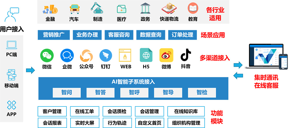 全场景全行业适用,全渠道接入,满足多种客服接待需求,把握每一次客户咨询。
